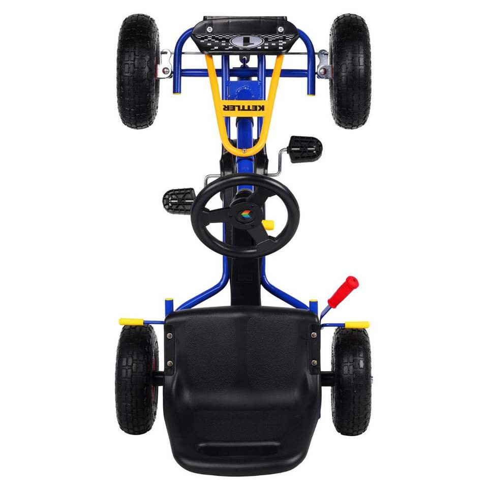 KETTLER Retro Kettcar Azul 3-6 Años Niños Racing Pedal Go Kart 35kg Capacidad Robusto Acero Construido con Freno Embrague Gear System
