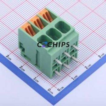 KF207R-6.35-3P Spring Terminal Block Bent Lead Through Hole,P=6.35mm Connector 1x3P 6.35mm Green 3P
