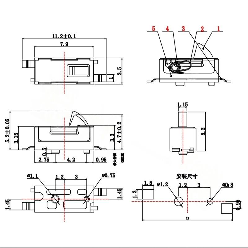 Microinterruptor KFC-W-03, Interruptor Táctil Silencioso de 2 Pines con Resorte Interno para Reinicio de Cámara, Negro, Alta Durabilidad