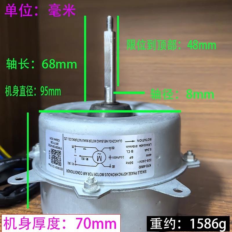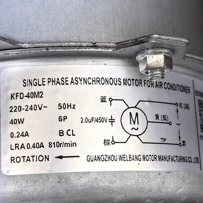 Motor Asíncrono KFD-40M2 de 130 mm Monofásico 1500 RPM con Montaje de Brida para Unidad Exterior de Aire Acondicionado