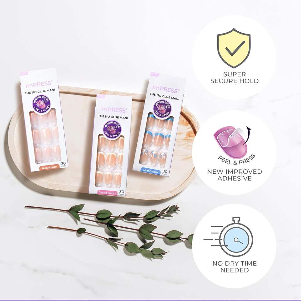 Característica:sin pegamento, pelar y presionar, incluye 30 uñas, almohadilla de preparación, hoja de instrucciones