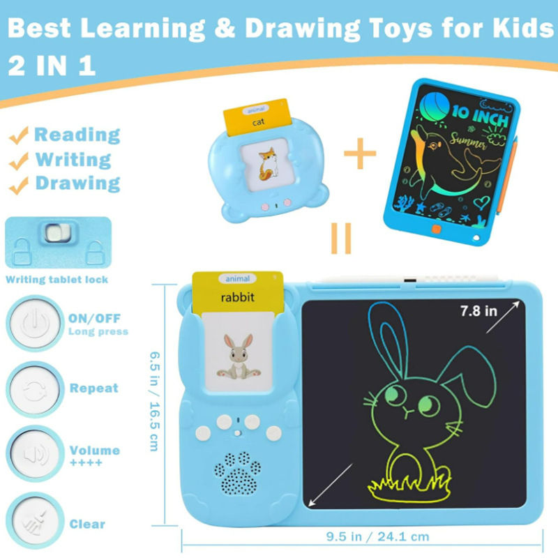 Tarjetas de Memoria KL, Tableta de Dibujo LCD, 255 Tarjetas, Árabe, Inglés, Español, Francés, Alemán, Portugués, Plástico, Recargable, Educativas