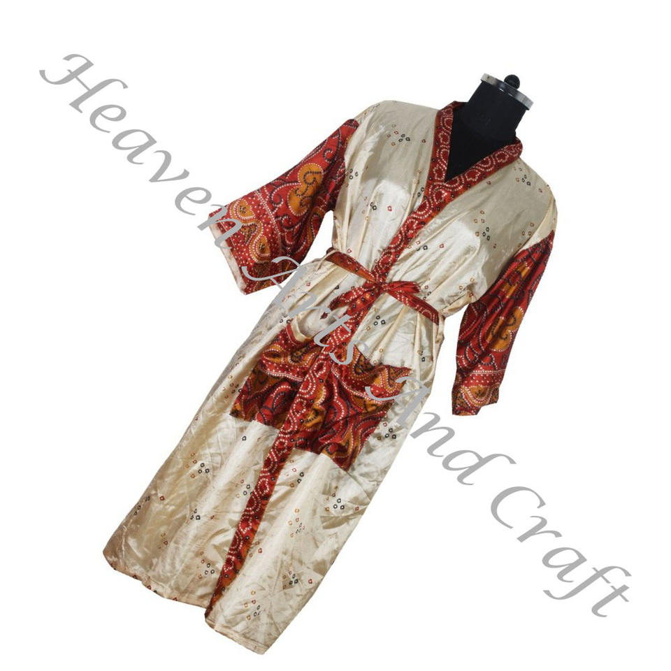 KL018 Hermoso Vintage Sari Kimono Túnica larga Vintage Verano Estampado floral Bohemio de gran tamaño Manga larga Vacaciones Vintage