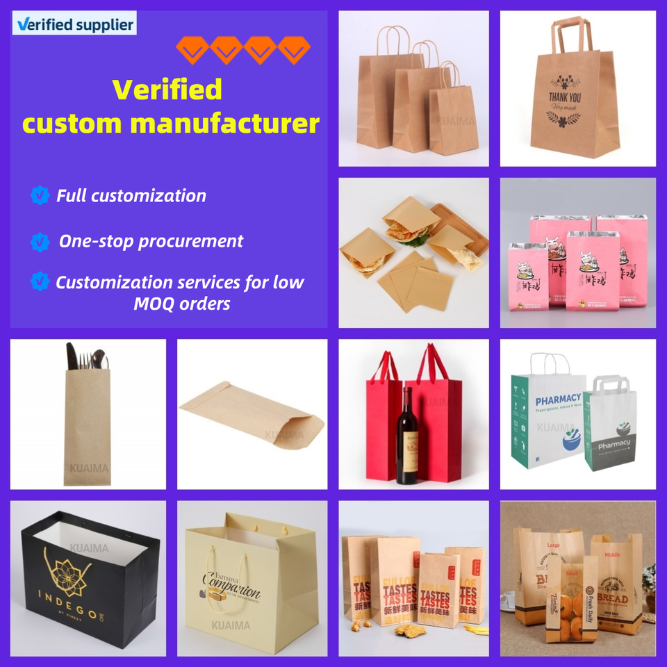 KM impreso personalizado ecológico desechable para llevar comida rápida bolsa de papel Kraft marrón y caja de papel para embalaje de alimentos