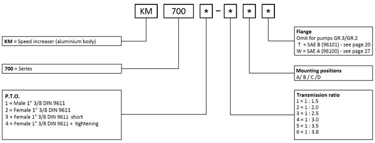 KM7003 Serie Tractor Bomba hidráulica PTO Aumentador de velocidad Multiplicador de aluminio Caja de cambios