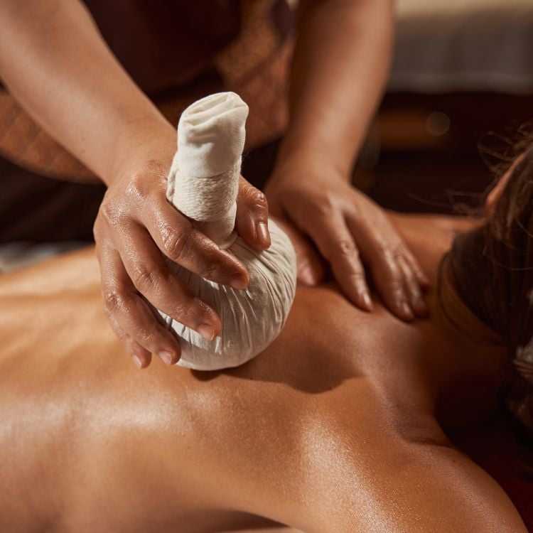 Método de masaje 1:Caliente la bola de hierbas hasta que esté caliente y presione en los puntos doloridos