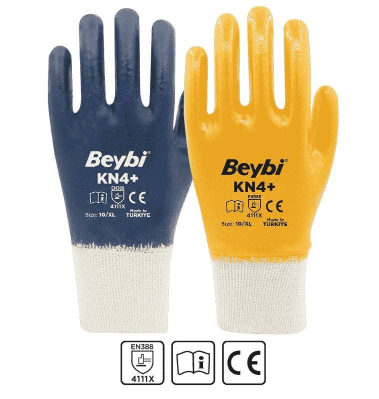 Guantes de punto de algodón y poliéster recubiertos de nitrilo.Malzeme
