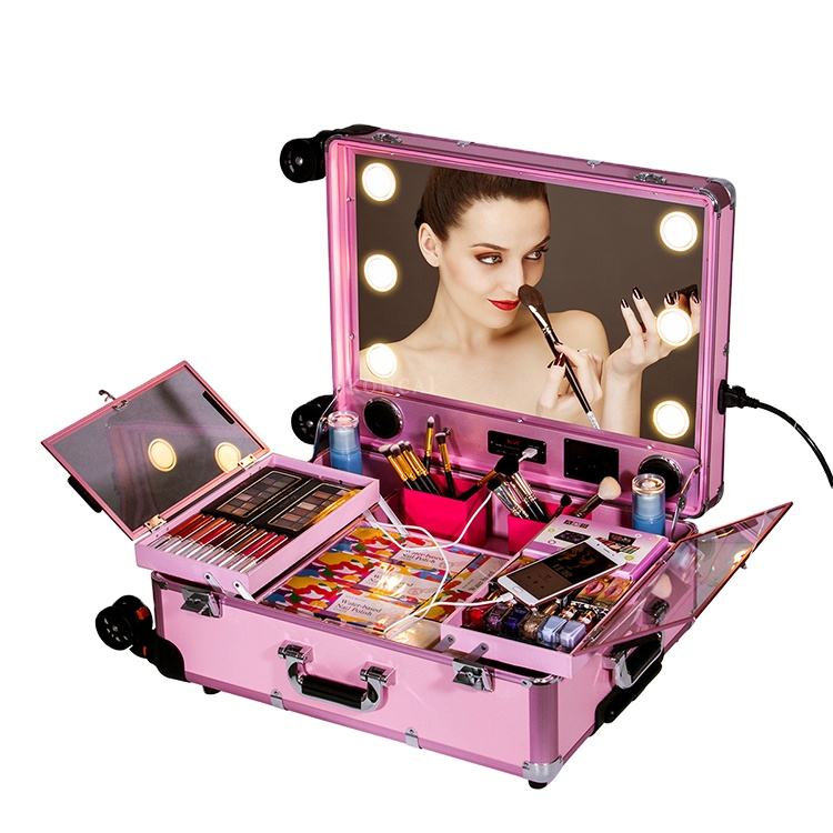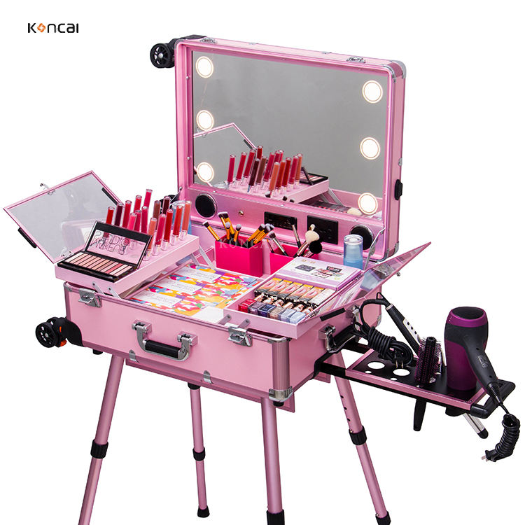 KONCAI Rosa Color MUA maquillaje de pelo caja de vanidad tren salón estaciones de estilismo belleza caso con altavoz