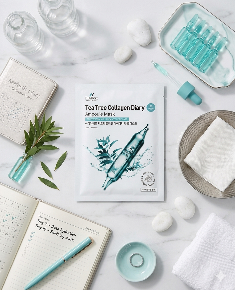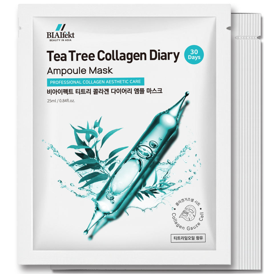 Mascarilla Facial Coreana de Árbol de Té y Colágeno, Ampolla Calmante para el Acné, Antienvejecimiento, Calmante de Poros, Iluminadora, Blanqueadora y Exfoliante