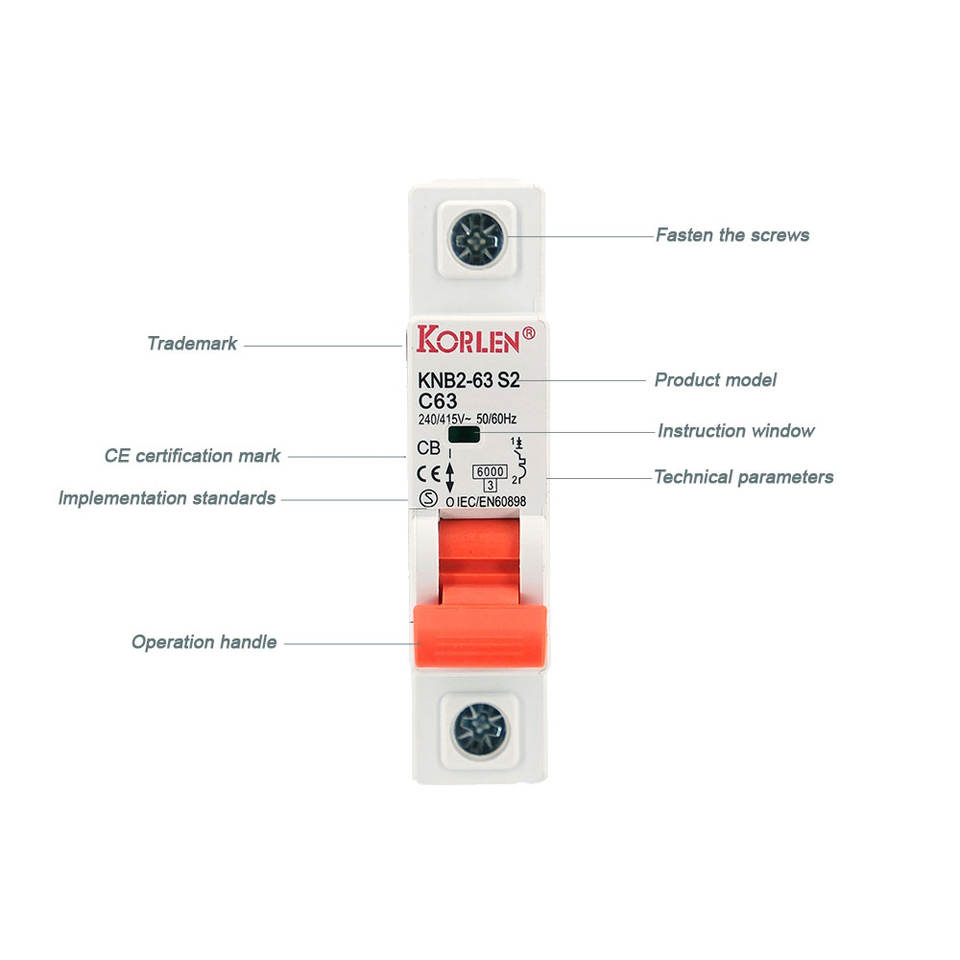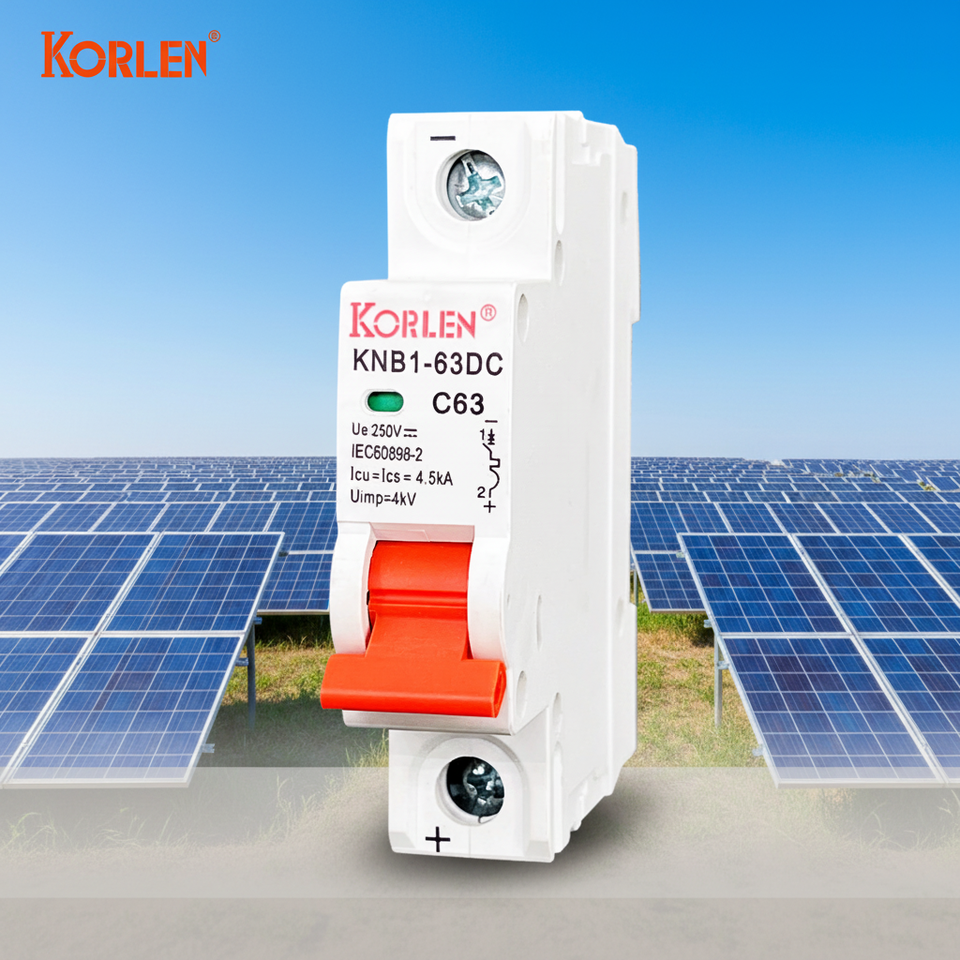 KORLEN 1P DC Mini Interruptor Automático (MCB) 6KA 500V IP20 PA66 IEC/EN60947-2 Protección Montaje en Riel Modelo KNB1-63DC