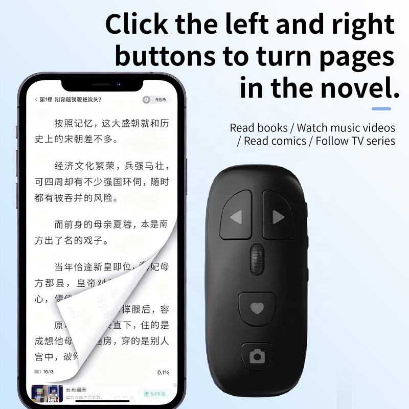 Control Remoto Inteligente Deslizante KR-06, Control Remoto Recargable de 300 mAh para Pasar Páginas, Disparador de Fotos y Videos para Videos Cortos de TikTok