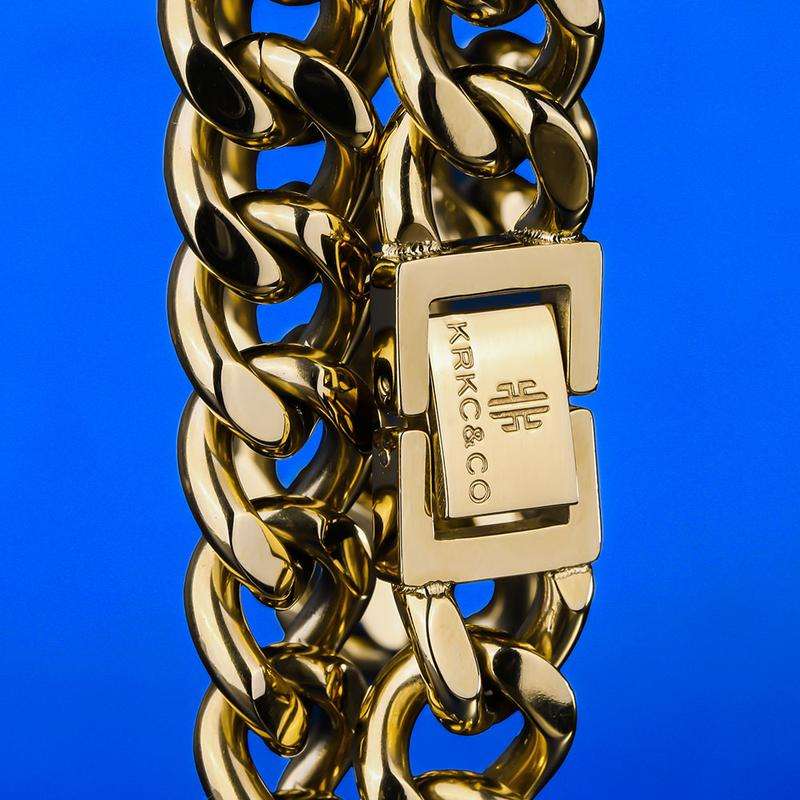 KRKC & CO Cuban Link Chain de12mm 20 pulgadas 14K Oro Hip Hop