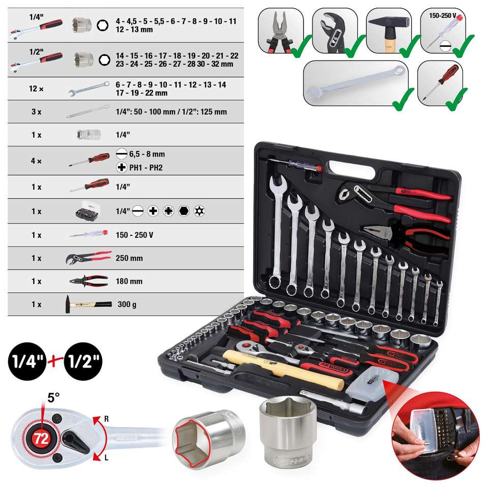 KS TOOLS 1/4 "+ 1/2" Juego de herramientas, 88 piezas