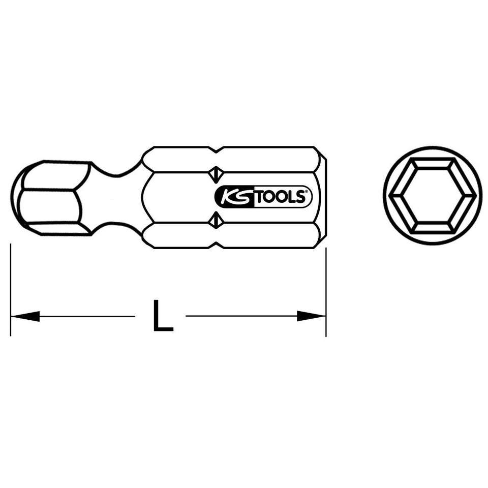 KS TOOLS 1/4 "Hexágono de broca con bola, 25mm, 2mm, paquete de 5