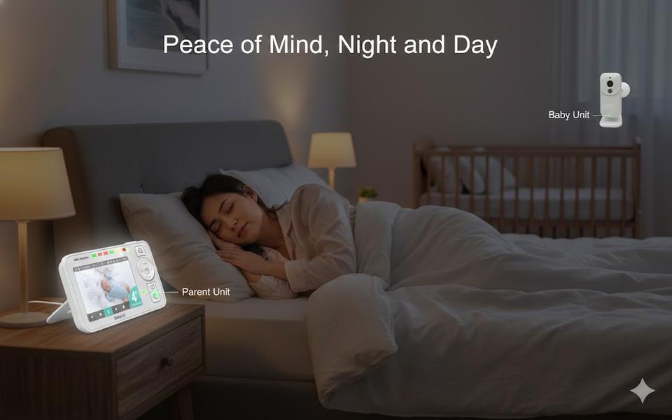 Visión nocturna, De Audio de dos vías, Temperature monitoring, Feeding Reminder, Video Recording, Wall Mountable, 2 white noiseCaracterísticas especiales
