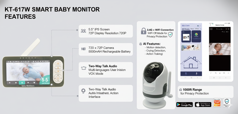 Construido-En sirena, Reconocimiento facial, Recordatorio de alimentación, Nullas, Detección de movimiento, Reproductor DE MÚSICA, Visión nocturna, De Audio de dos vías, Supervisión de la temperatura, De detección de sonido, PAN-TILTCaracterísticas especiales