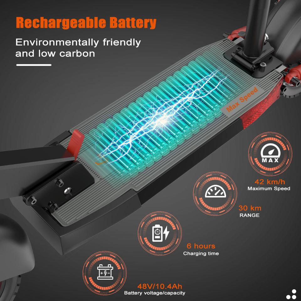 Patinete Eléctrico Todoterreno KUGOO de Máxima Velocidad con Motor sin Escobillas de 600W 42KM/H, E-Scooter Plegable de 10 Pulgadas con Asiento Desmontable