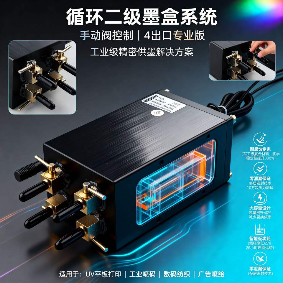 Sistema de Suministro Continuo de Tinta KUNAG 7201 de Doble Cavidad y Dos Etapas con 4 Válvulas para Impresora de Inyección de Tinta, Impresión Digital