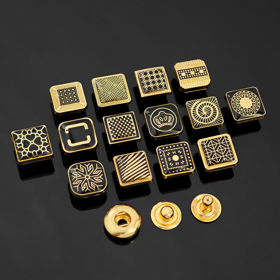 KUNSHUO-Ropa de hombre con botones cuadrados de metal, cierre de presión con logotipo personalizado, camisa ecológica de aleación de zinc Abaya Thobe