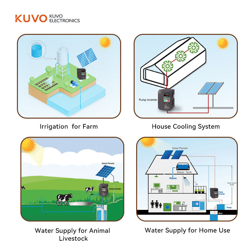 Inversor de Bomba Solar KUVO con Entrada CC y MPPT, Salida CA de 380V, Control de Velocidad del Motor, Variador de Frecuencia VFD