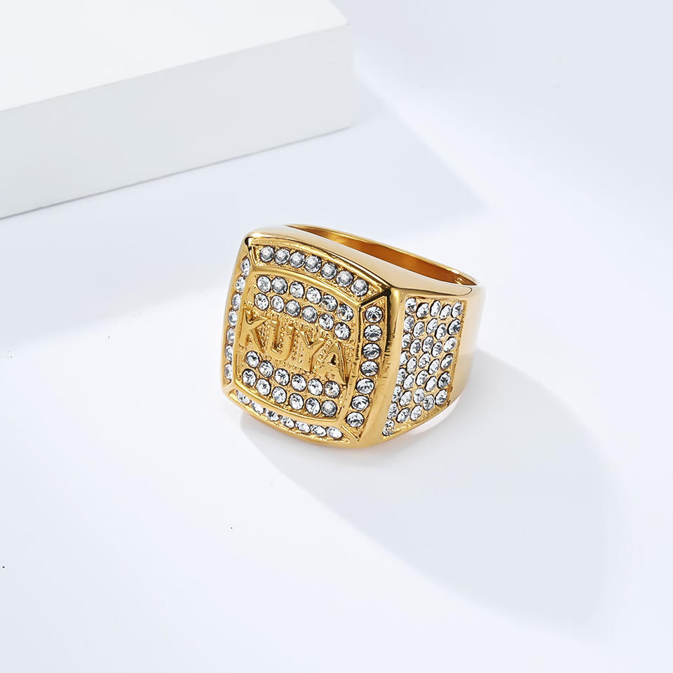 Anillo KUYA con Forma de Escudo, Micro Pavé, Joyería de Moda para Hombre, Regalo, Acero Dorado