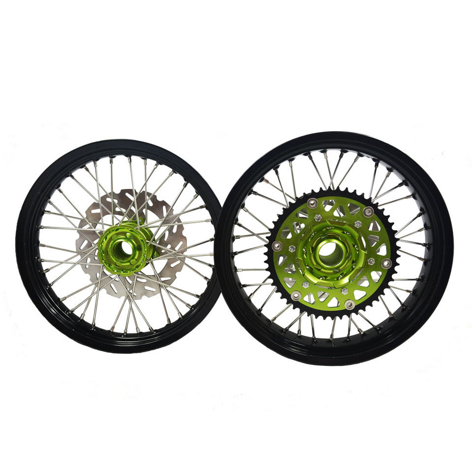 Super Motard de 17 pulgadas de borde negro verde Hub ruedas conjuntoNombre del producto