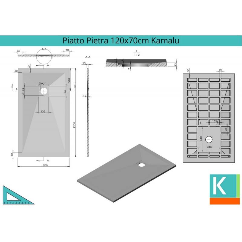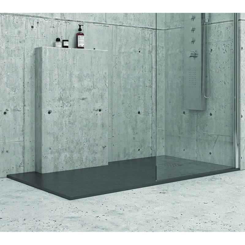 Plato de Ducha de Piedra Artificial Kamalu de Diseño Moderno, 120x70, Gris Oscuro, Acrílico, Cuadrado, para Baño, Uso en Exteriores y Hoteles