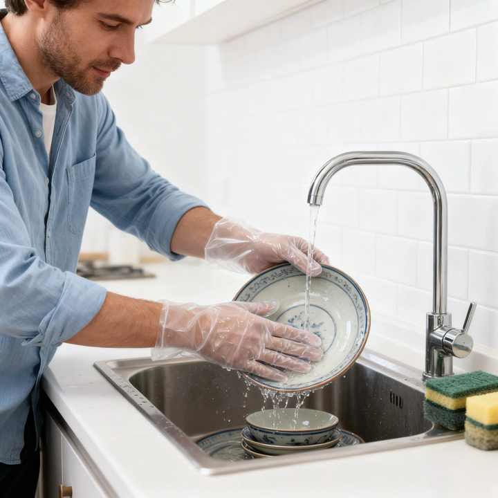 Kangle clear Disposable Embossed Lightweight Durable LDPE Gloves 500 Pieces Medium Thick Kitchen Cleaning Home Use Food Grade