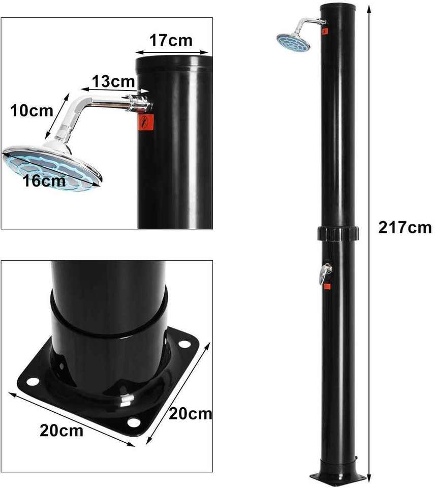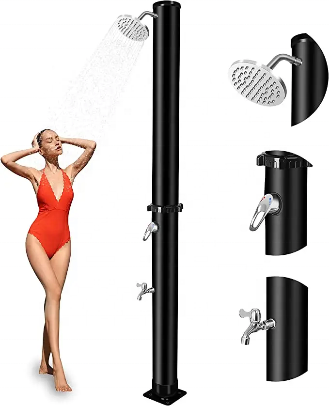 Kangrun alta calidad 100% calefacción Solar dos secciones PVC cuerpo 38L redondo negro al aire libre ducha Solar para jardín piscina