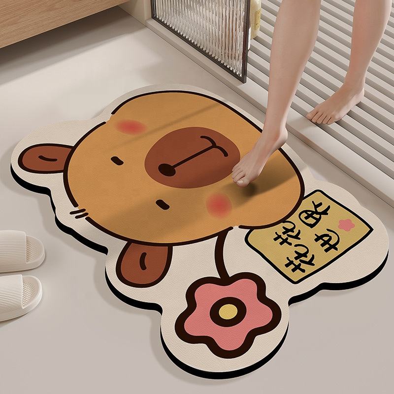 Alfombra de Baño Absorbente de Secado Rápido Kapibala, Alfombra Antideslizante para Puerta de Baño, Alfombra de Dibujos Animados