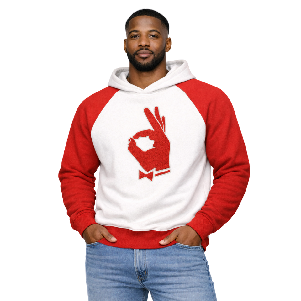 Sudadera con Capucha de Manga Raglán Blanca Kappa Alpha Psi YO Hand Sign 1911, Sudadera de Forro Polar Premium, Sudadera de Fraternidad Griega