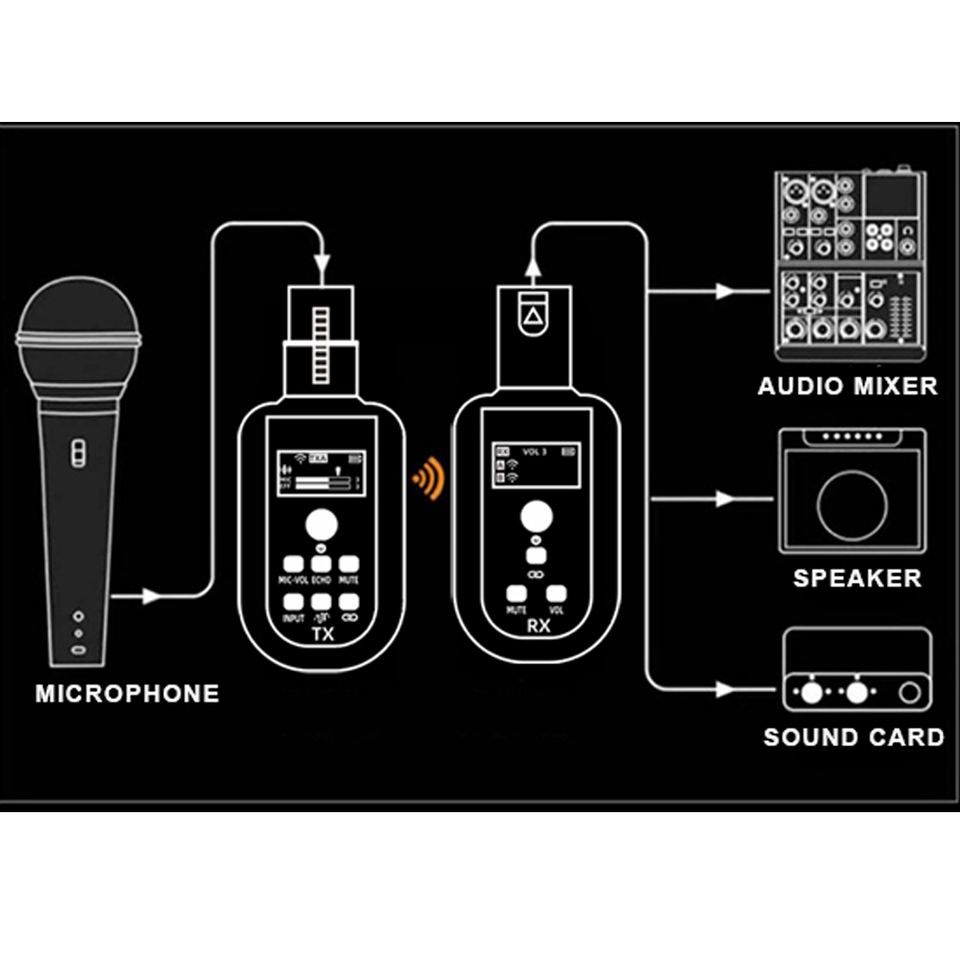 Micrófono de Karaoke con Control de Reverberación y Silenciador, Cancelación de Ruido, Adaptador Inalámbrico Recargable de 2.4G, Transmisor y Receptor Enchufable con Pantalla