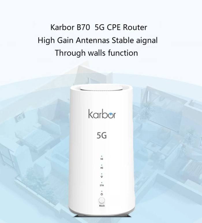 Karbor 5G LTE CPE Router Home Firewall WiFi 6 VoLTE 2167Mbps 300-500m Rango RJ45 WAN/LAN Puertos Nano SIM Soporte