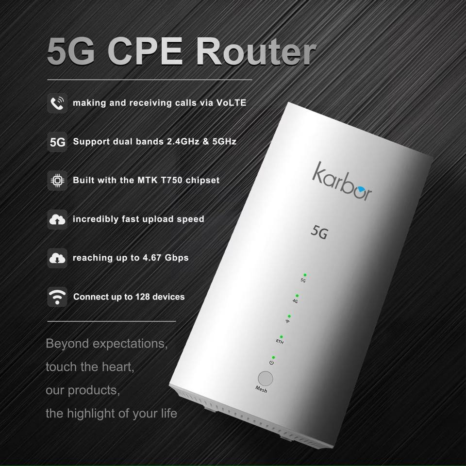 Enrutador WiFi Karbor B70 5G, módem 5G de alta velocidad de 3000Mbps con tarjeta Sim, enrutador móvil Glocalme Numen Air 5G para uso doméstico