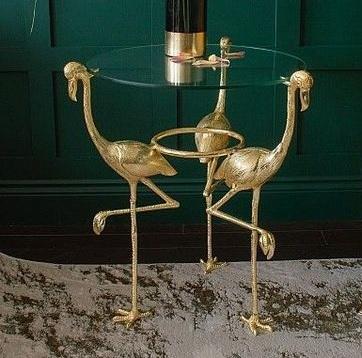 Mesa Auxiliar de Metal con Diseño de Flamenco Kare, Acabado Dorado Antiguo, Mesa Decorativa Moderna de Lujo con Forma de Animal para Sala de Estar