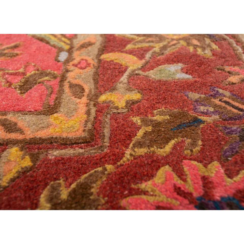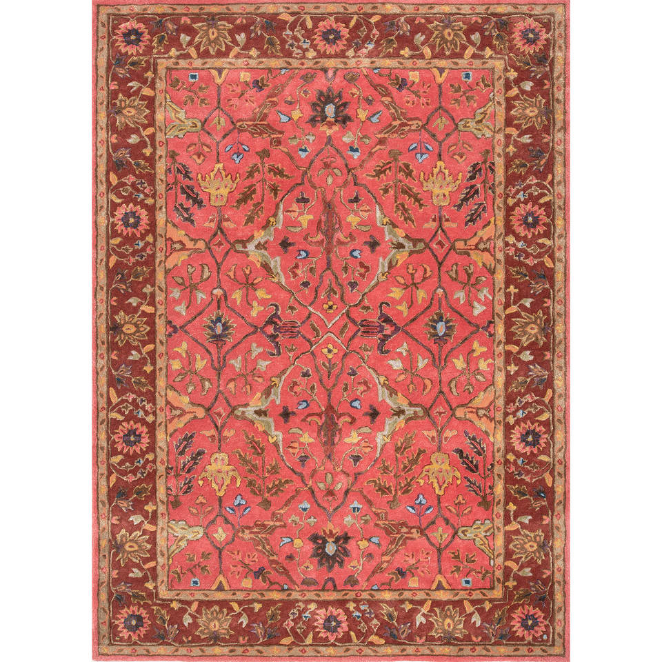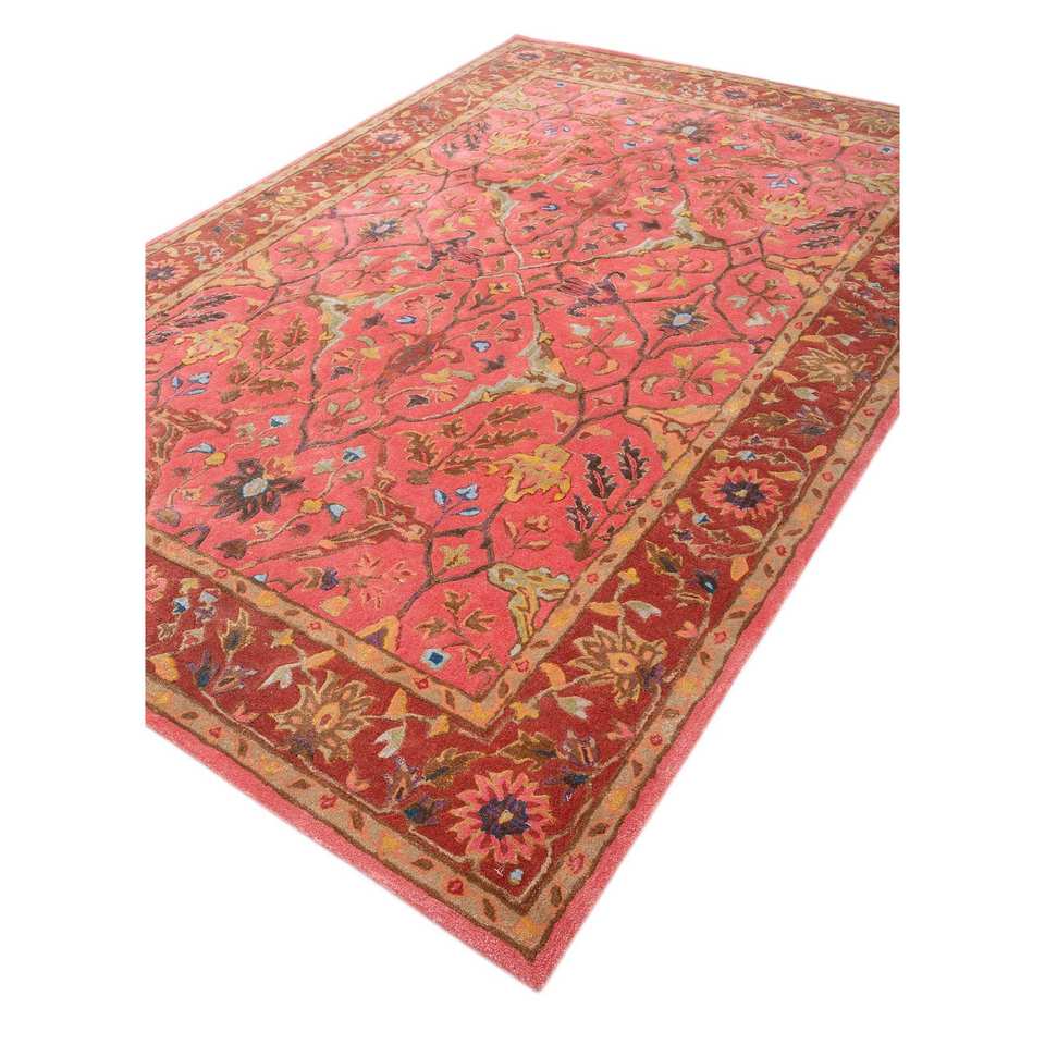 Alfombras Kasbah de Lana y Viscosa Hechas a Mano, Diseño Floral Rojo Naranja con Rayas, Clásicas para el Hogar, Pasillo, Forma Rectangular-Top-1509(Cs-01)