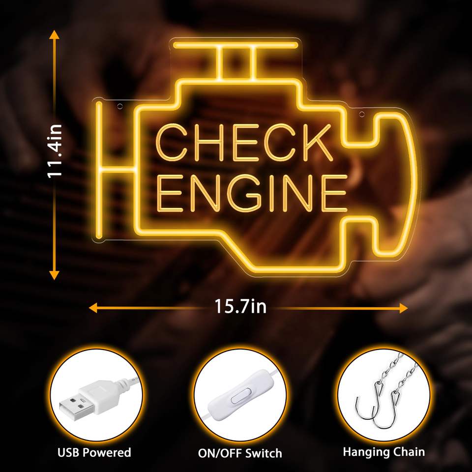 Kavaas LED Neon Light Sign Check Engine' Garage Decor para entusiastas de los automóviles Taller de reparación de automóviles El mejor regalo de papá en amarillo dorado