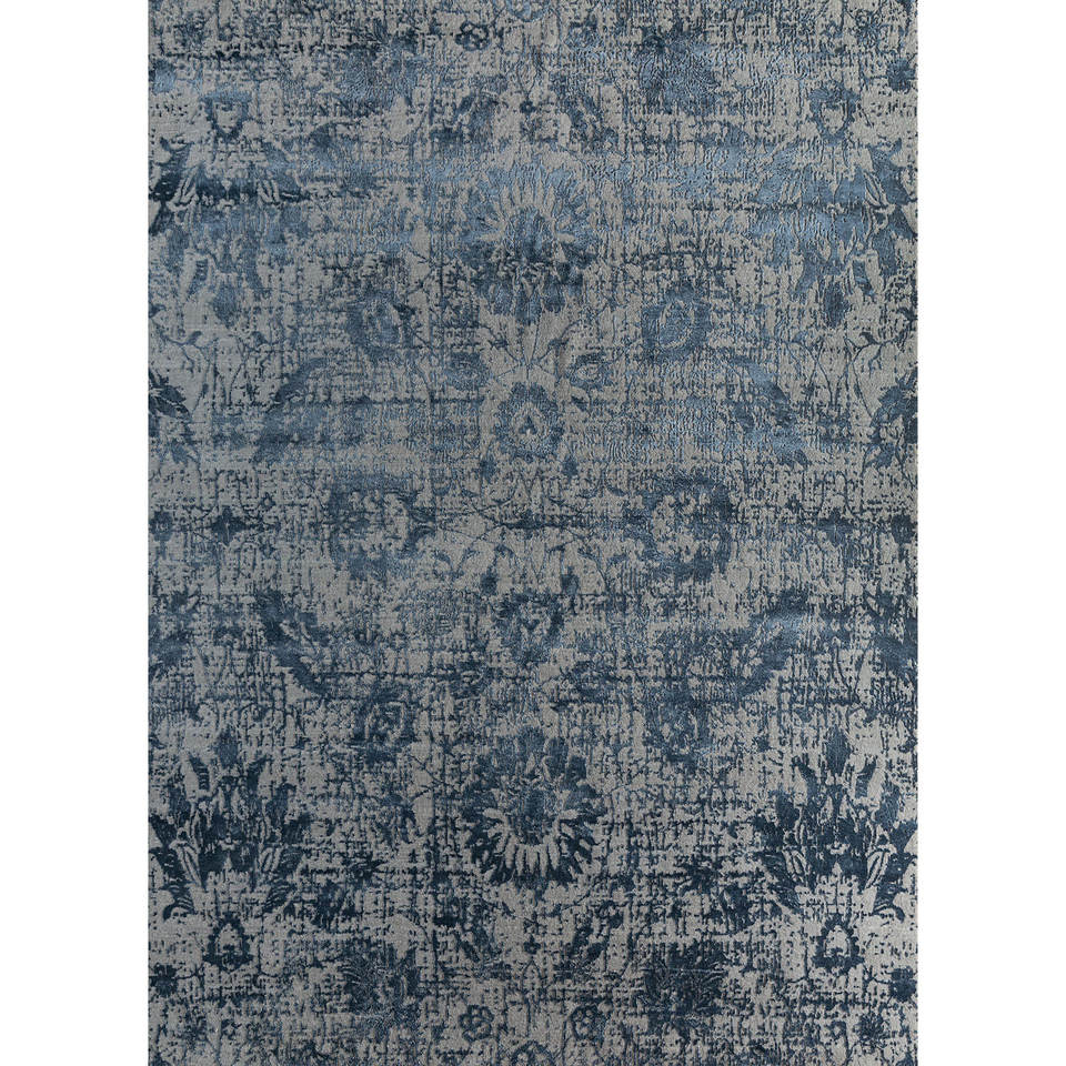 Alfombra Rectangular de Lana y Seda de Bambú Anudada a Mano con Diseño Floral Gris y Negro Kavi, Colección Teoría del Caos - Alfombra para Sala de Estar para Adolescentes