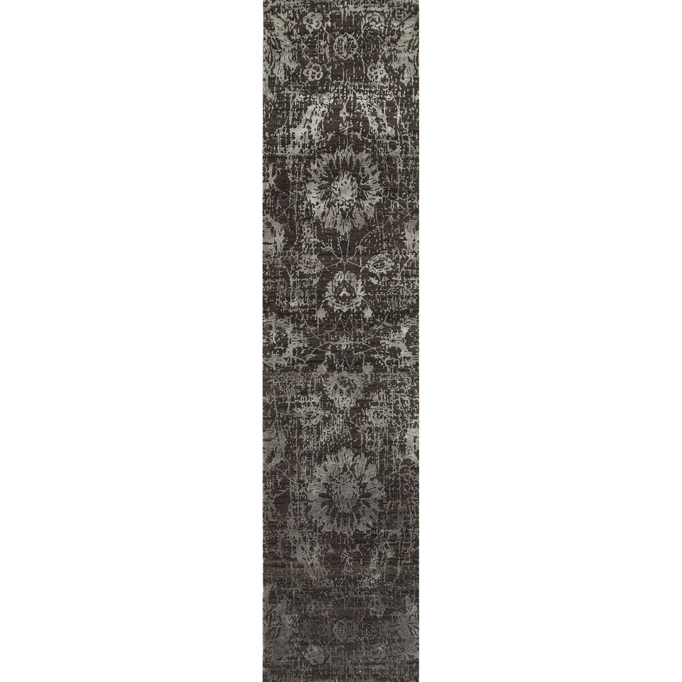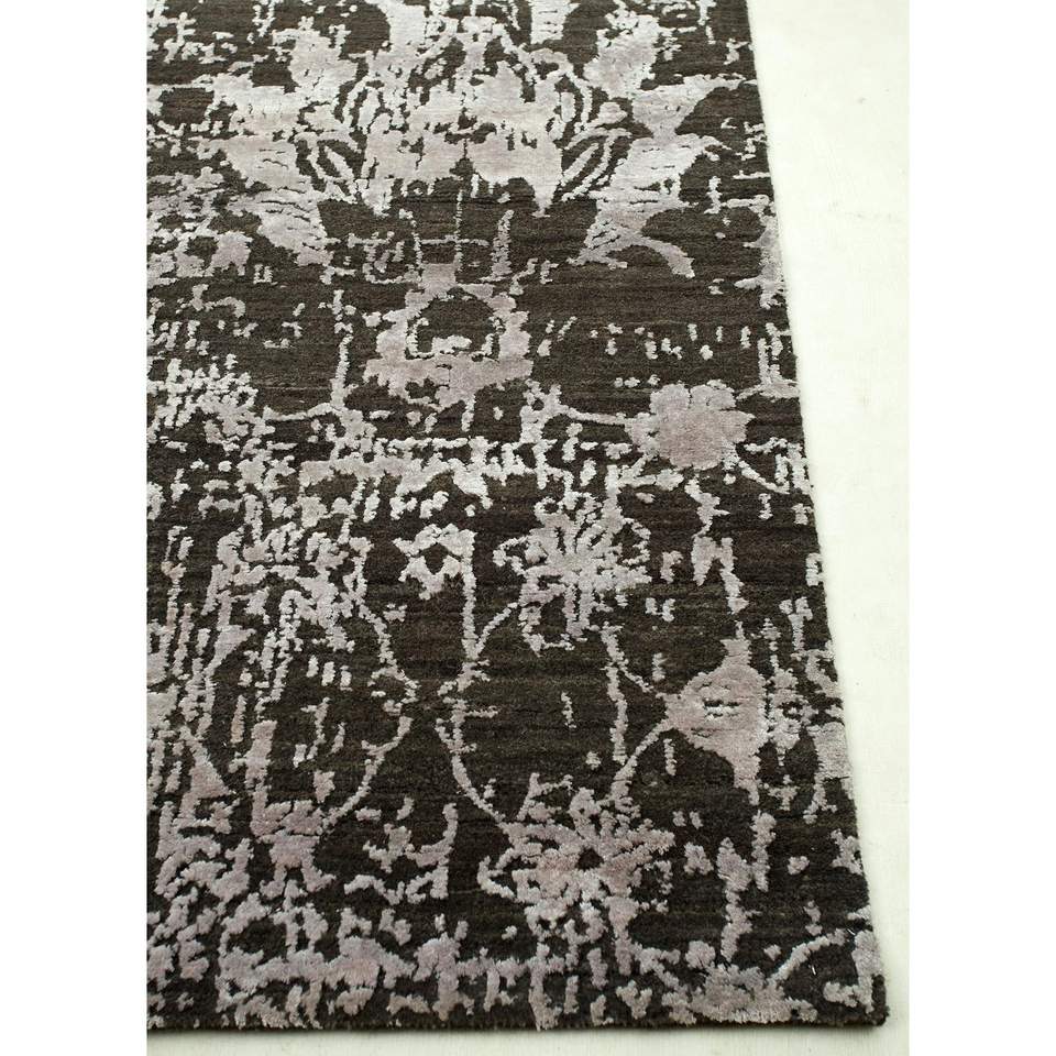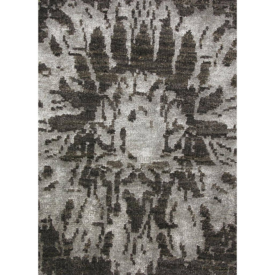 Alfombra Rectangular de Lana y Seda de Bambú Anudada a Mano con Diseño Floral Gris y Negro Kavi, Colección Teoría del Caos - Alfombra para Sala de Estar para Adolescentes