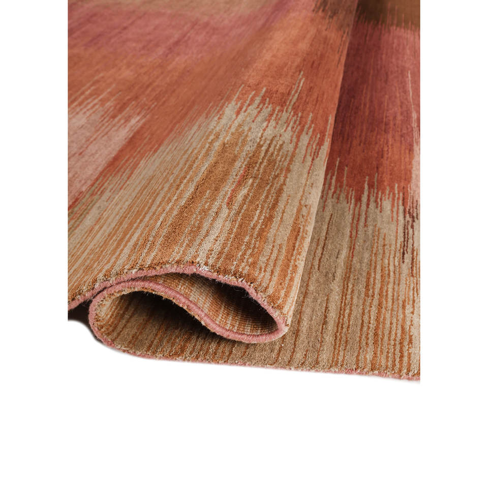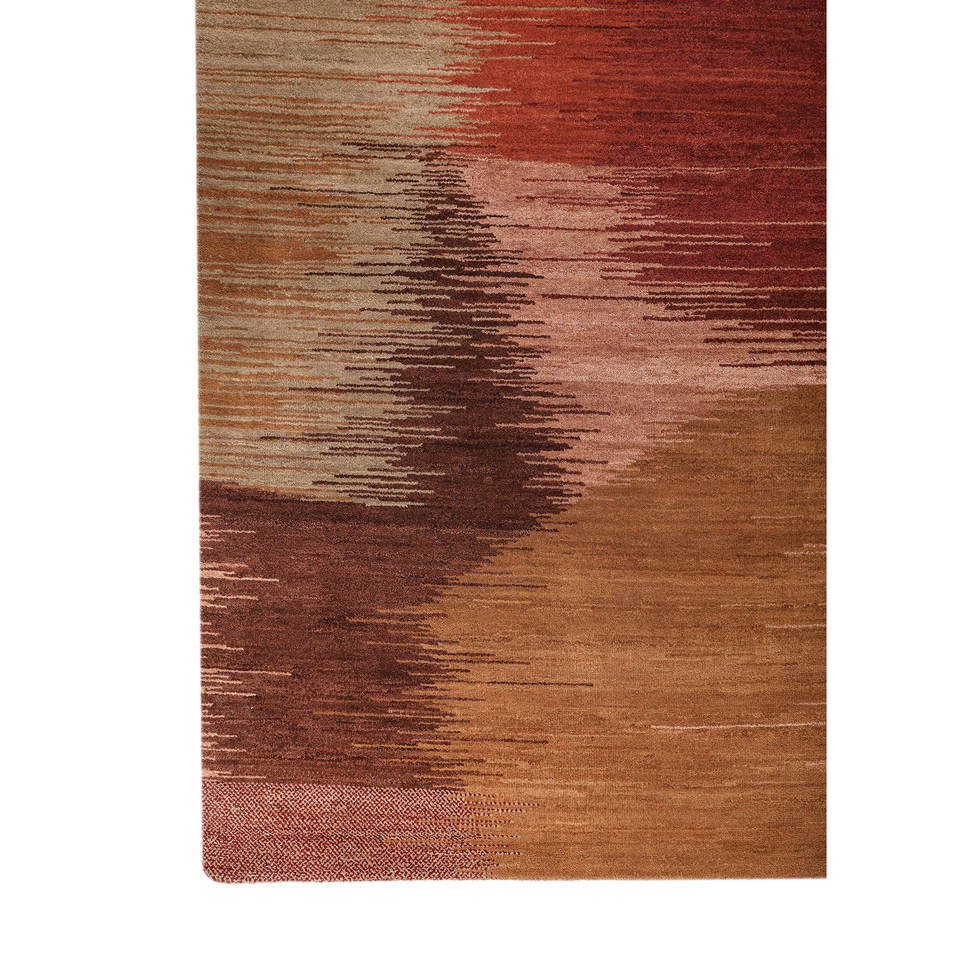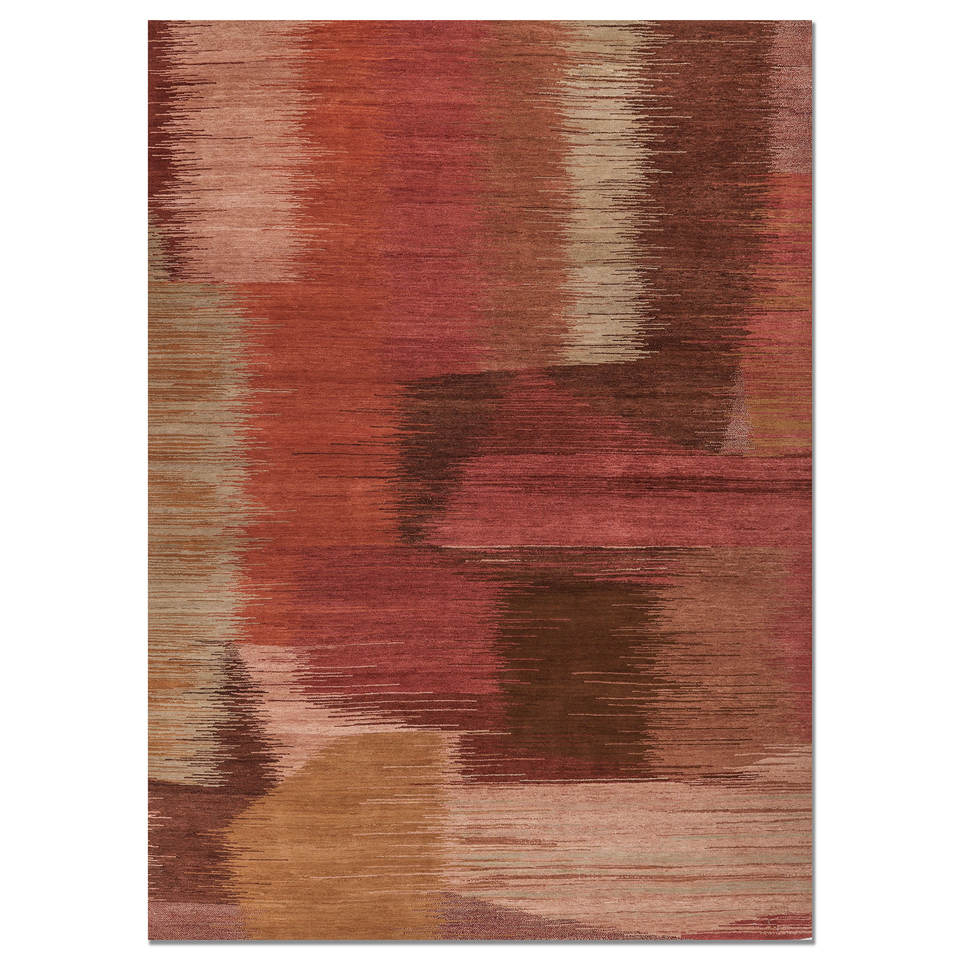 Alfombra de Lana Anudada a Mano Kavi, Colección Afterglow, Patrón Abstracto Rojo y Naranja para Uso Doméstico EPRM-07