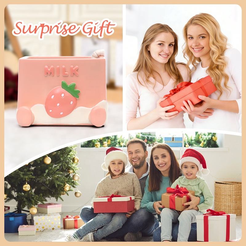 Maceta de Resina con Diseño de Fresa y Limón Kawaii ROOGO, Maceta Creativa con Temática de Frutas para Decoración de Hogar, Oficina y Escritorio, Regalo