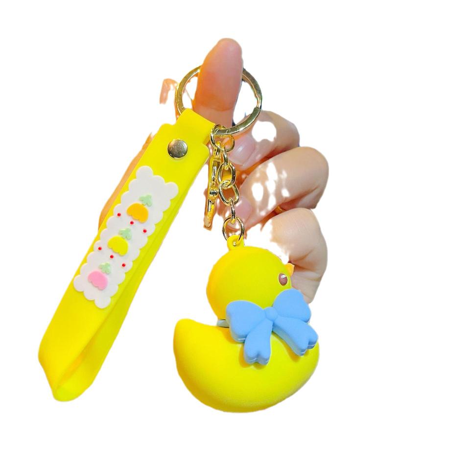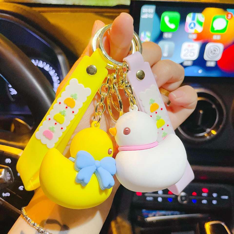 Llavero de Pareja de Patitos Amarillos Kawaii, Mini Llavero de PVC con Forma de Pato para Coche y Bolso, Lindos Llaveros de Goma de Anime Kawaii