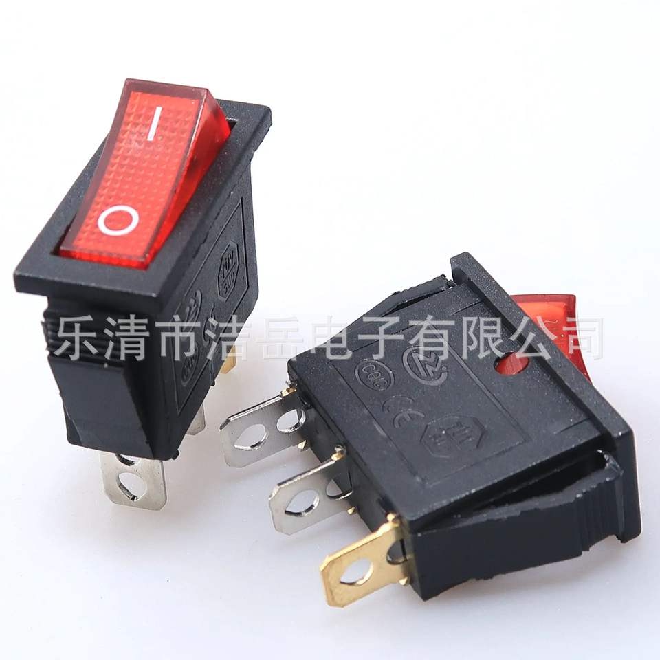 Interruptor Basculante Kcd3 con Luz Indicadora Roja, 3 Pines, 2 Posiciones, Carcasa de Nailon, IP41