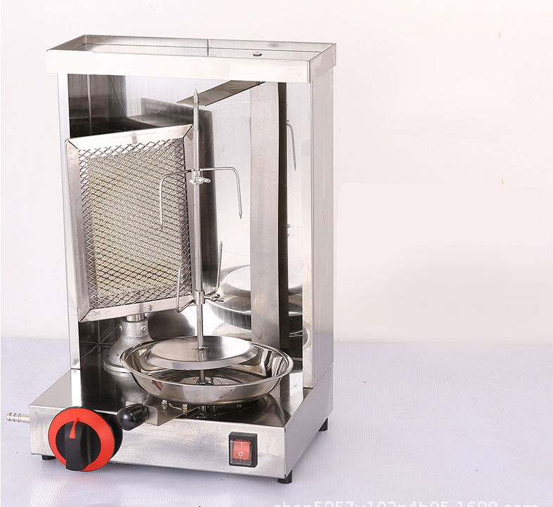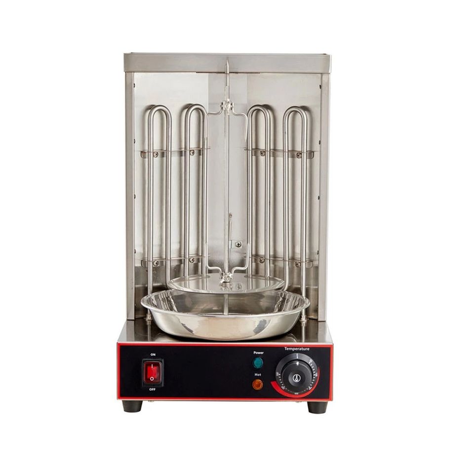 Máquina de Kebab Eléctrica Vertical, Asador Giratorio con Interruptor de Ajuste de Temperatura, Acero Inoxidable, 2 Quemadores, 50-300 d