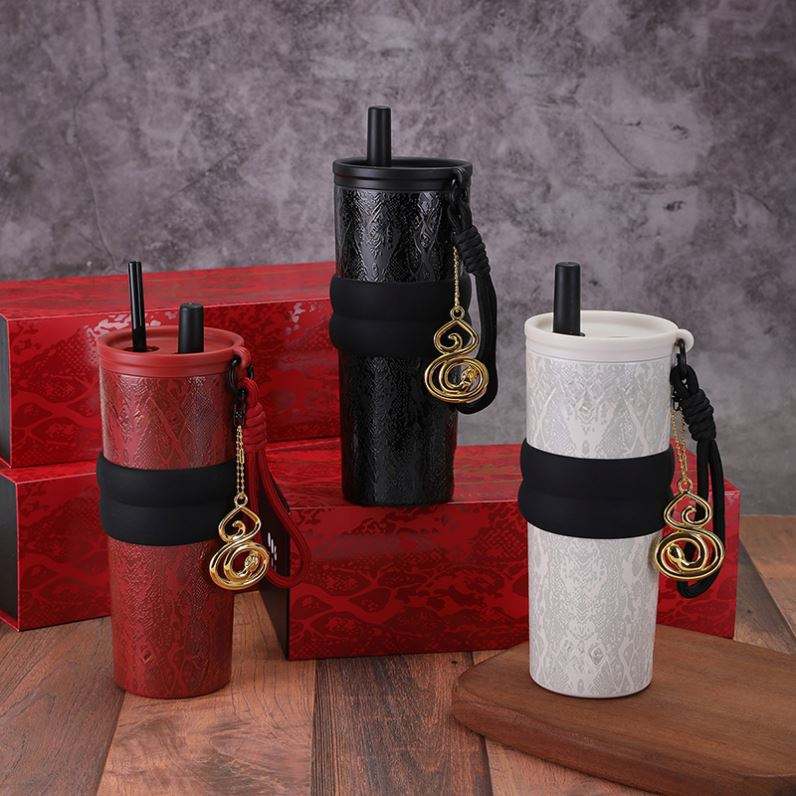 Taza Aislada de Acero Inoxidable con Revestimiento Cerámico para Mantener Bebidas Frías o Calientes, Portátil, con Pajita