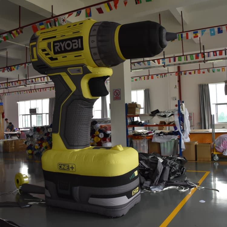 Réplica inflable gigante del taladro eléctrico KeepFuns | Modelo de Herramienta Personalizada con Marca para Publicidad de Eventos y Exhibición Promocional