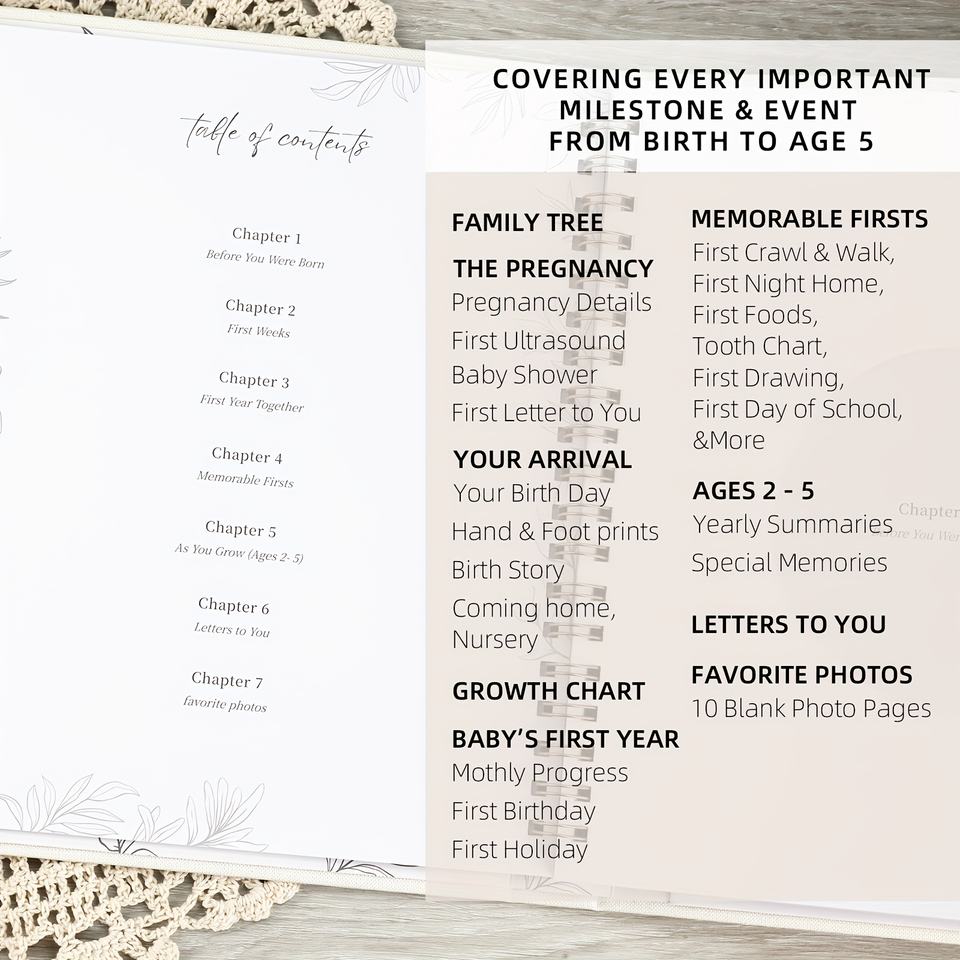 Libro de Recuerdos para Niño o Niña - Diario de los Primeros 5 Años - Regalo Neutral por Género - Álbum de Recortes o Fotos para Padres Primerizos