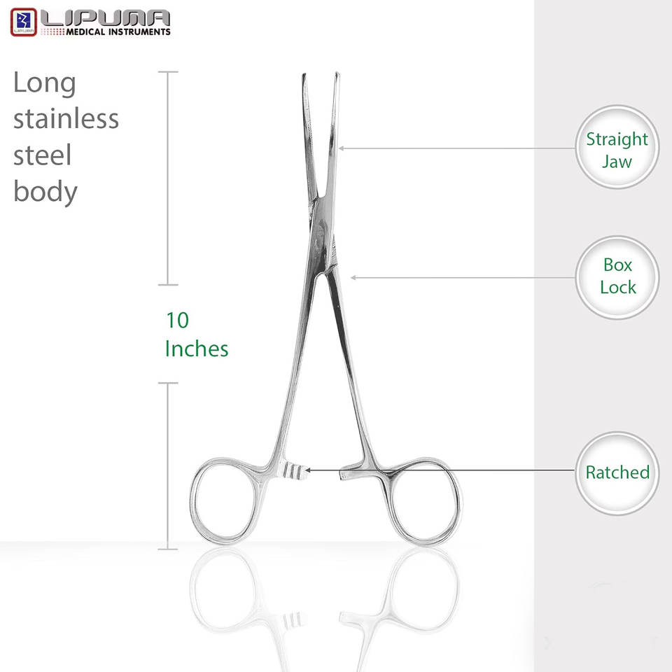 Pinzas quirúrgicas dentales de mano recta Kelly de 10 pulgadas, hemostato de bloqueo Manual para aplicaciones veterinarias, MOL compatible con seguridad