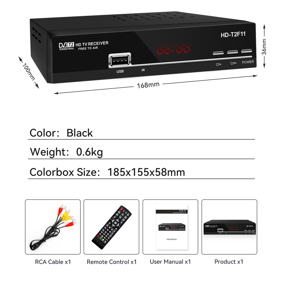La caja de un color incluye: 1 * Receptor HD de 1 * Mando a distancia