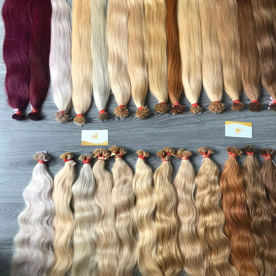 Keratin Hair I-Tips 100% Virgin Extensiones de cabello Remy vietnamita Cinta preunida Cabello 8-32 pulgadas Longitud 100gms Luz ligera